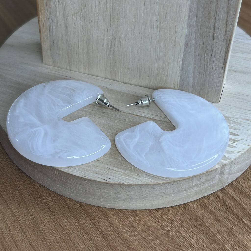 Estiloso e leve, o Brinco Circular Acrílico Marmorizado é aquele acessório que transforma o visual com um toque moderno e descontraído. Seu design em formato circular com recorte lateral e efeito marmorizado cria um charme único e contemporâneo.